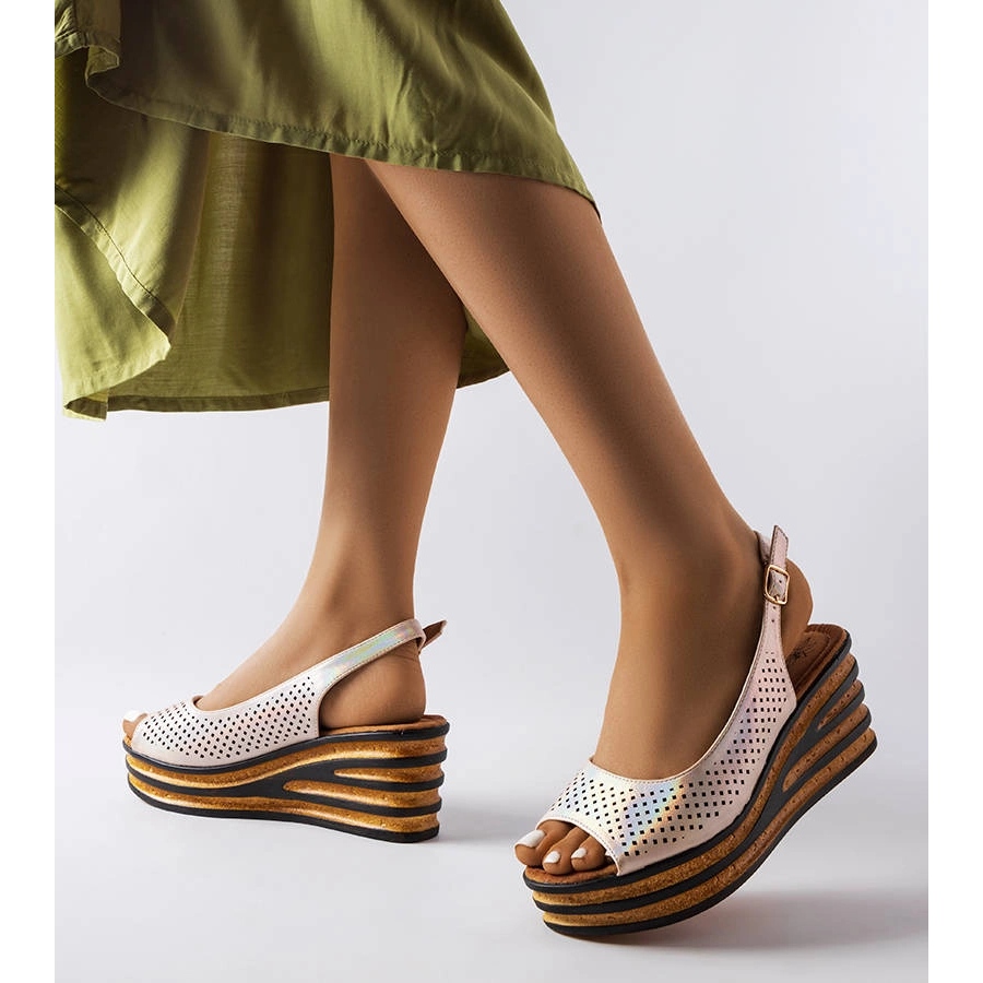 Bézs espadrilles a Griner ékön - elegáns és kényelmes szandál, amely tökéletesen kiegészíti a nyári stilizációkat. A GD-FL1041A ék fényes szandál modellje egyesíti a klasszikus formát egy finom, nyitott dekorációval, amely világosságot és frissességet ad.