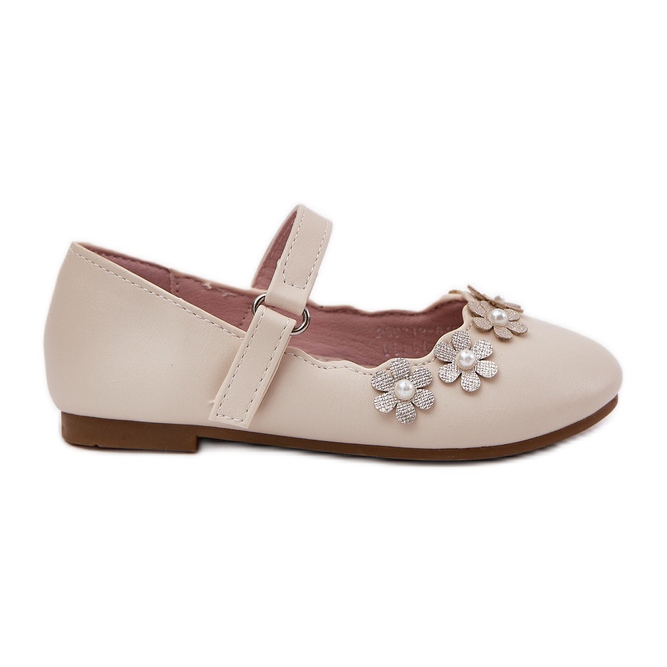 Részletek: EVento Bézs gyermekballerinák virágokkal
