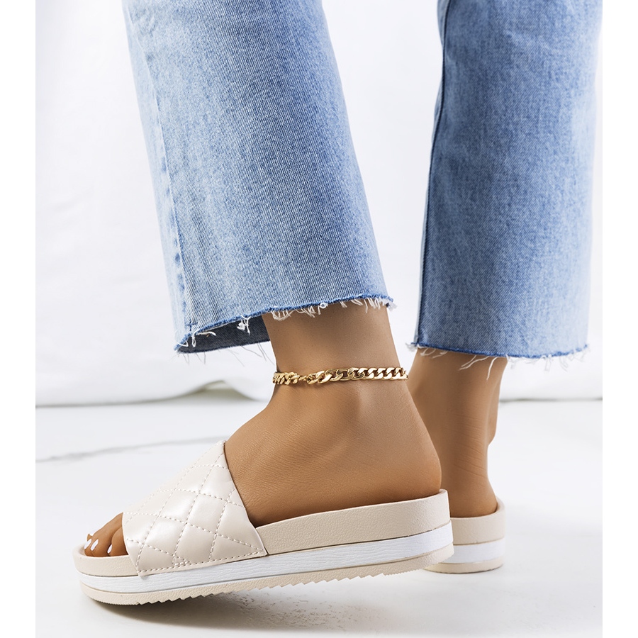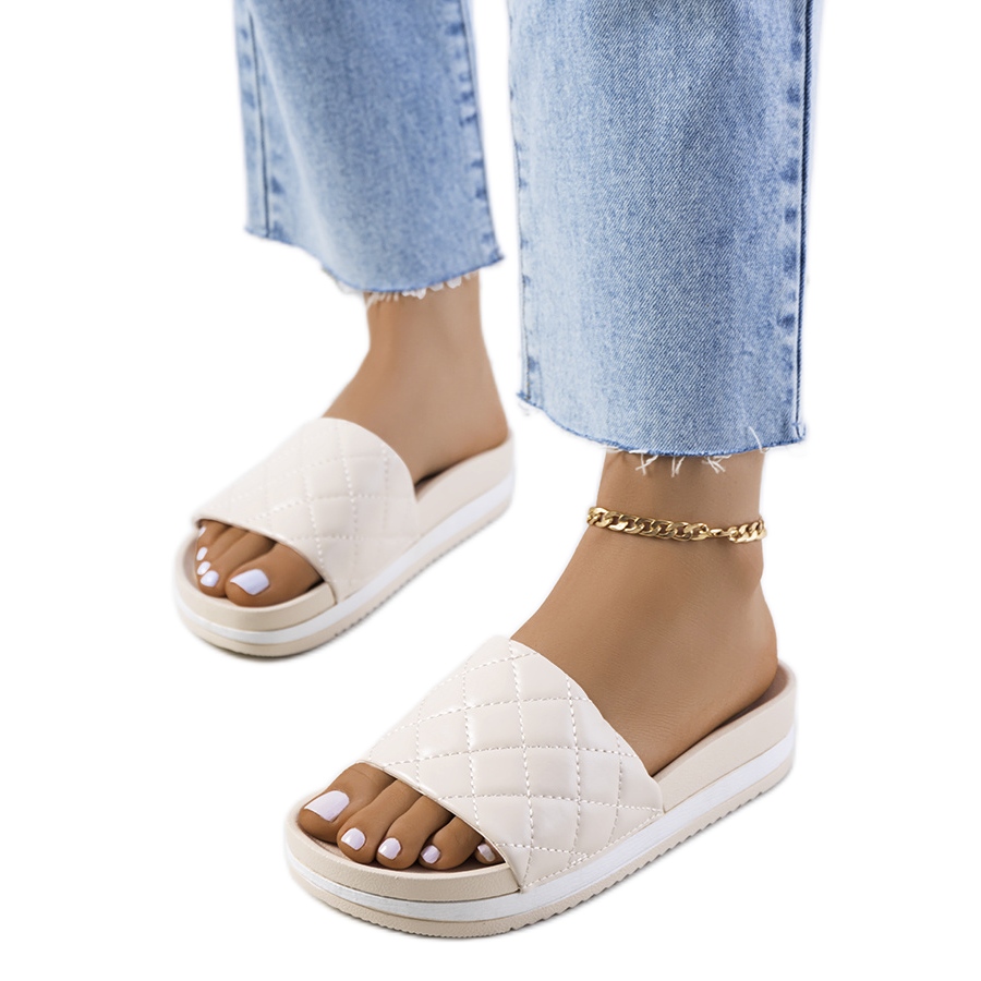 Ne várj! Gazdagítsa nyári kollekcióját bézs színű steppelt Hassell csúszdákkal, és érezze divatosnak és kényelmesnek magát minden lépésnél.