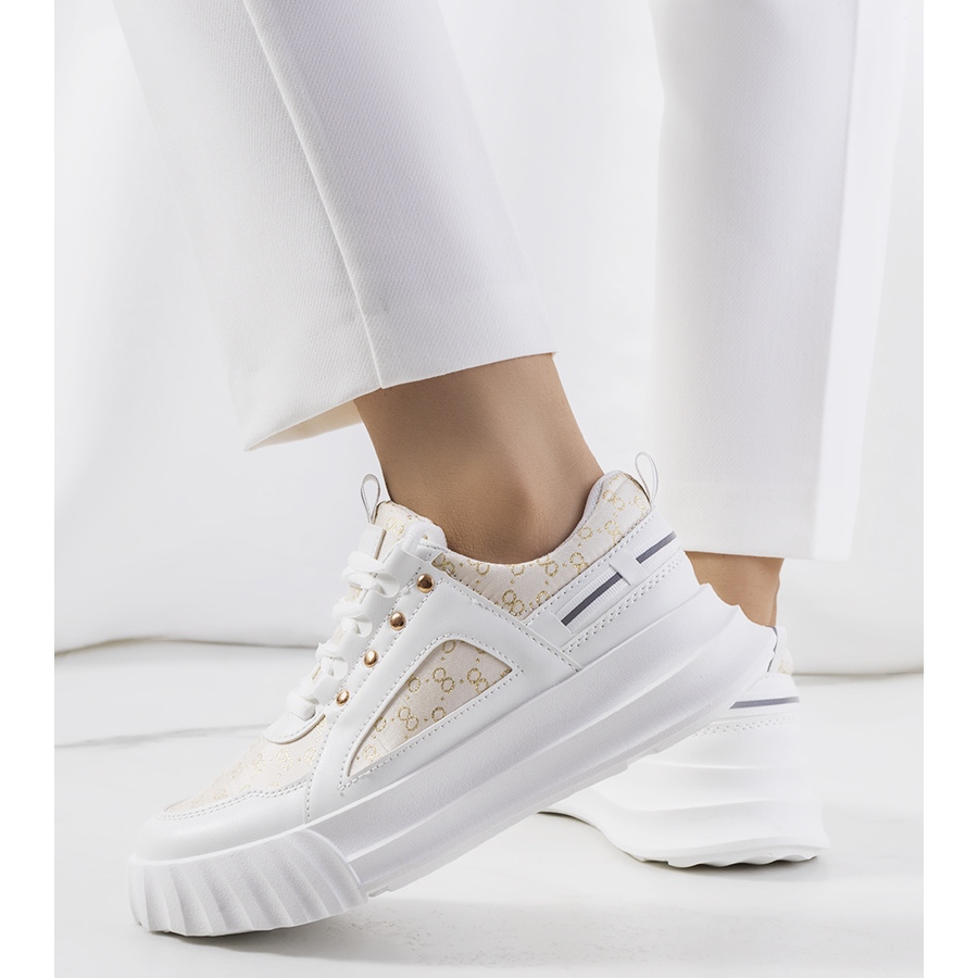 Magas, 3,5 cm magas talpuk optikailag karcsúsítja a lábakat, így minden stílus könnyednek tűnik. A bézs és fehér színek miatt a tornacipők tökéletesen passzolnak különféle ruhákhoz, az alkalmitól az elegánsabbig.