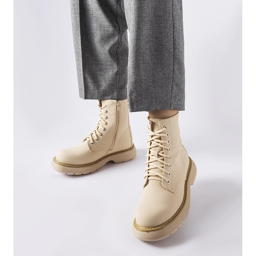 Elegáns és funkcionális túrázás egy univerzális bézs bézs árnyékban. Kiváló minőségű ökológiai bőrből (külső és beszúrás) kombinálják a modern formatervezést a gyakorlati megoldásokkal - ideálisak az őszi -vias szezonhoz. A klasszikus, lekerekített lábujj és platform stílust ad nekik, és ugyanakkor biztosítja a kényelmet.