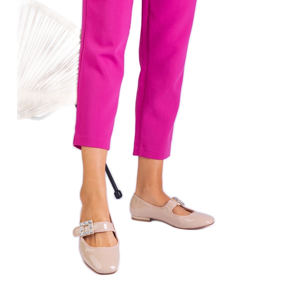 Bézs lakkozott balerinák, amelyek bilincset díszítenek