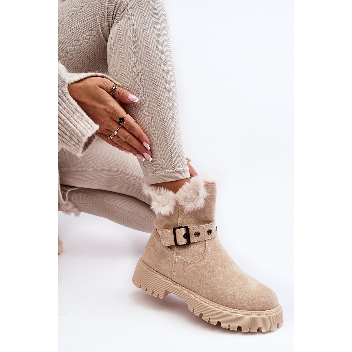 Részletek: Vinceza Bézs Morcos női bokacsizma szőrme cipzárral