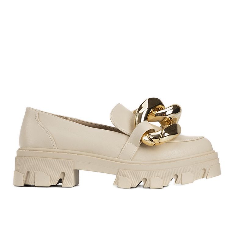 Larisa Beiige Loafers vastag lánccal - D7866 modell