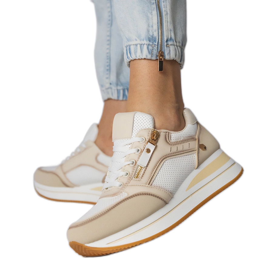 Részletek: Bézs sportos cipők egy csúszkával díszítve