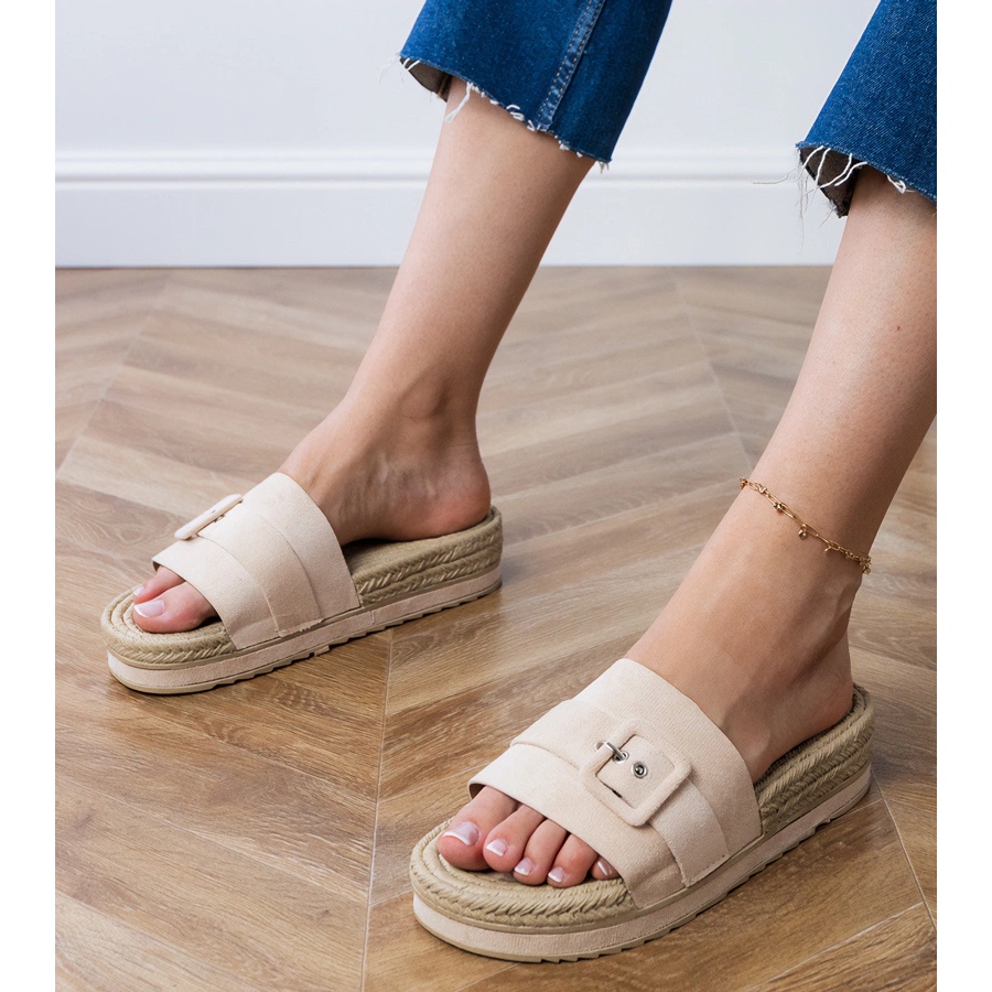Finom bézs színük tökéletesen keveredik a különféle ruhákkal, és a dekoratív csat egyedi karaktert ad nekik. Kiváló minőségű ökológiai velúr bőrből készült, a Lolo28 flip -flopok nemcsak stílusosak, hanem környezetbarátak is.