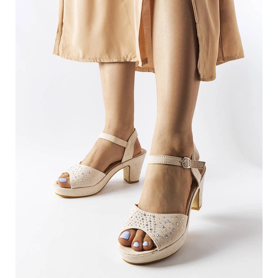 A klasszikus szandál a Beltane Poston univerzális bézs színű, tökéletes választás a nyári kirándulásokhoz és az elegáns alkalmakhoz. Cirkonokkal és strasszokkal díszítve, minden stilizáció ragyogó és finom osztályát adják hozzá. Egy magas, 8 cm -es sarkú sarok, mint például a poszt vékony az ábra, és a nyitott lábujj rendkívül érzéki módon teszi ki a lábát. Az állítható csatrögzítés lehetővé teszi a pontos illeszkedést, biztosítva a stabilitást a gyalogláskor.