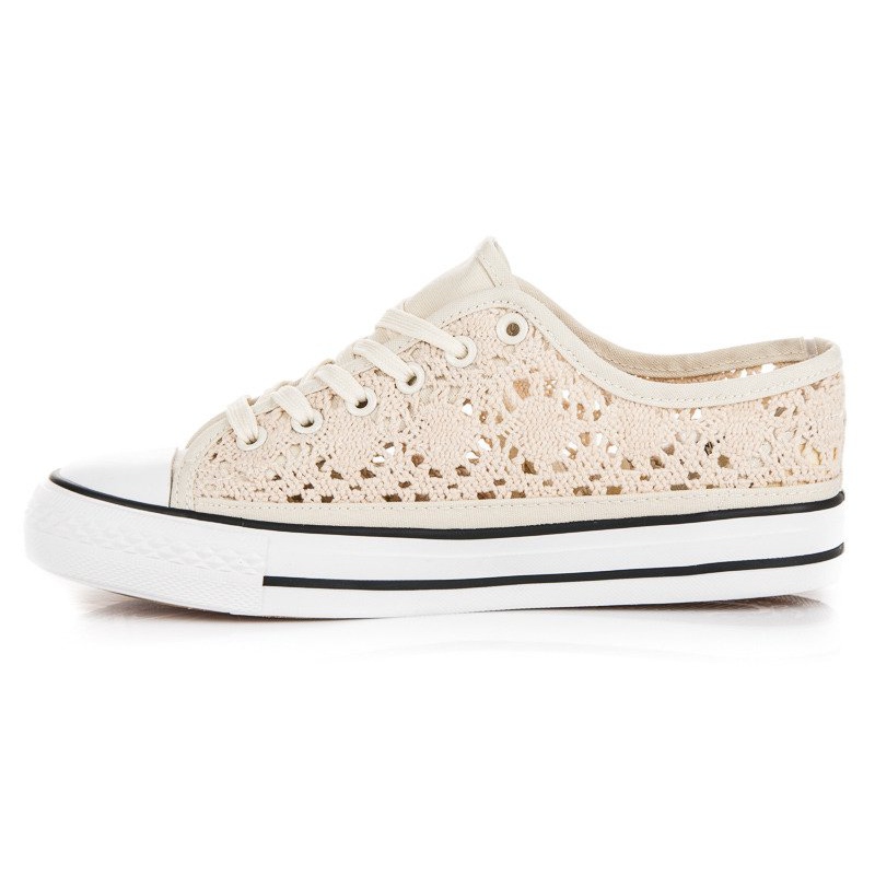A bézs színű csipke tornacipő tökéletes választás azoknak a nőknek, akik értékelik a kényelmet és a stílust egyaránt. Az Inna Marka márka által gyártott alacsony tornacipők a modern dizájnt klasszikus elemekkel ötvözik. Kiváló minőségű anyagból készültek, kivételes könnyedséget és légáteresztő képességet biztosítanak, így tökéletesek a melegebb napokra.