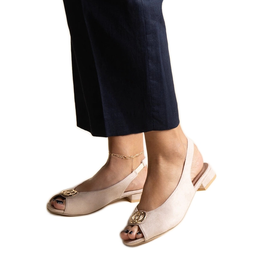 Részletek: Bézs színű felbújós szandál alacsony sarkú Teyla