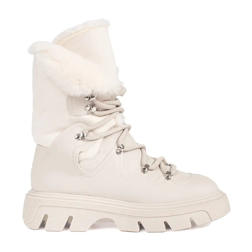 Seastar Seastar Bézs színű fűzős női hócsizma szőrmével az emelvényen