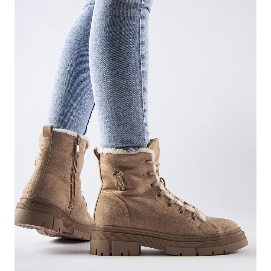 Inna marka Bézs színű hőszigetelt bokacsizma Pompei öko-velúrból