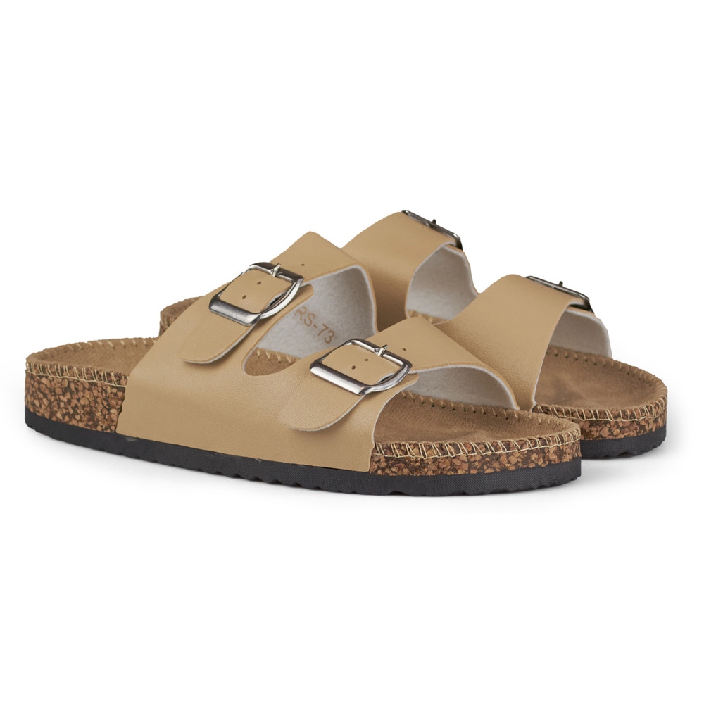Bézs kényelmes női papucs - Egy univerzális modell tavasszal és nyárra, kombinálva a kényelmet az elegáns, visszafogott formatervezéssel. Kiváló minőségű ökológiai bőrből készült, lágy velúr betéttel, stabil 3 cm -es platformot kínálnak, és kényelmes csúszást kínálnak egy állítható csatkal, amelynek köszönhetően bármilyen lábhoz illesztheti őket.