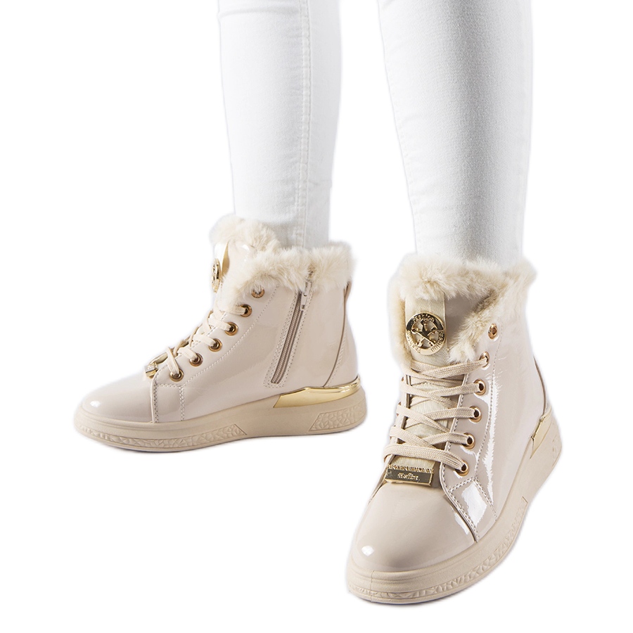 Inna marka Bézs színű, Lubriano szőrmével bélelt tornacipő