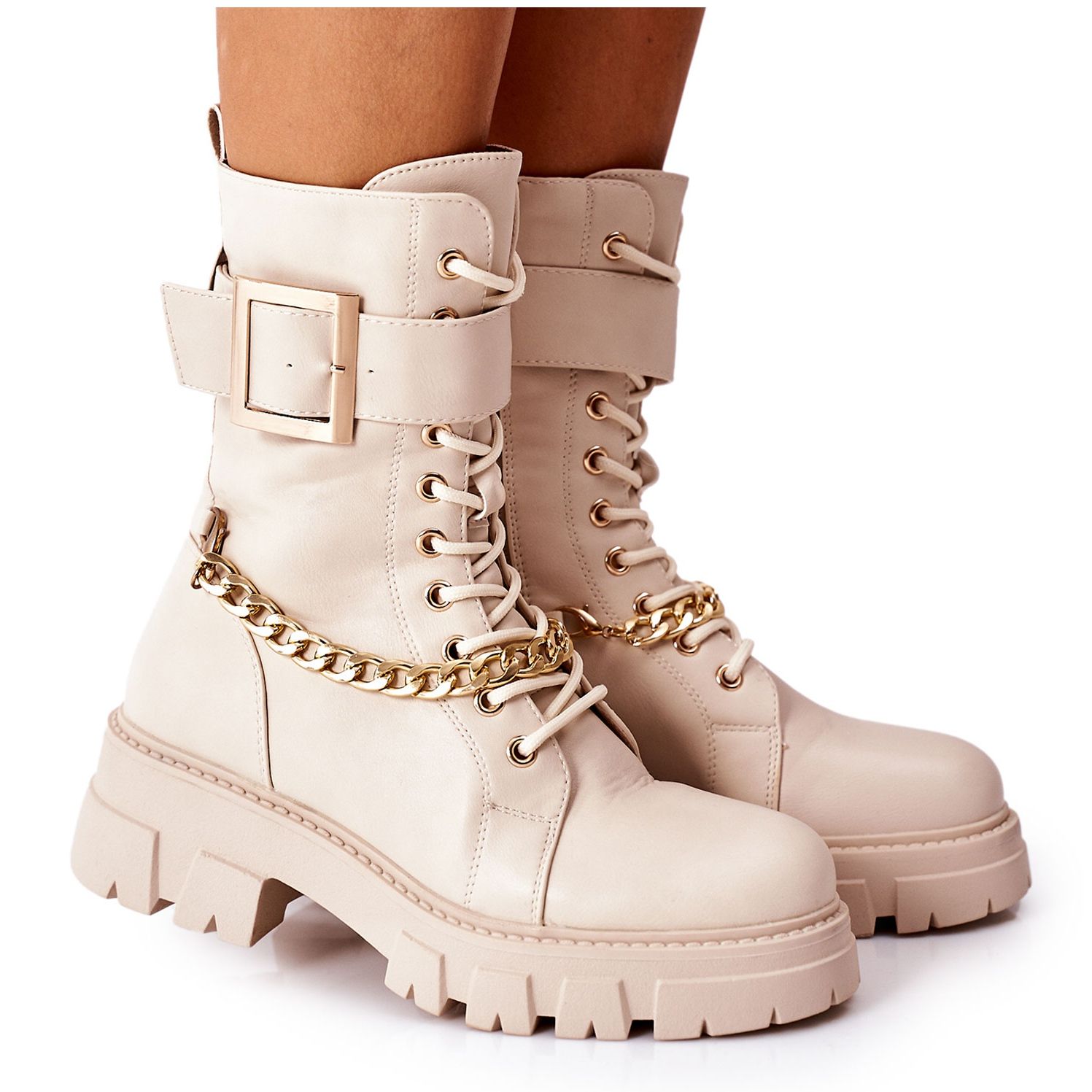 Inna marka Bézs színű munkáscsizma lánccsattal Tanaros