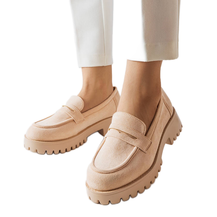 Inna Beige öko-velúr cipő A Dina beige elegáns választás minden nő számára, aki értékeli a klasszikus esztétika és az ökológiai megközelítés kombinációját. Ezek a Buty Gemre márka női mokaszinjai az időtlen dizájnt ötvözik a környezetvédelemmel, köszönhetően a kiváló minőségű ökológiai velúr bőr használatának.