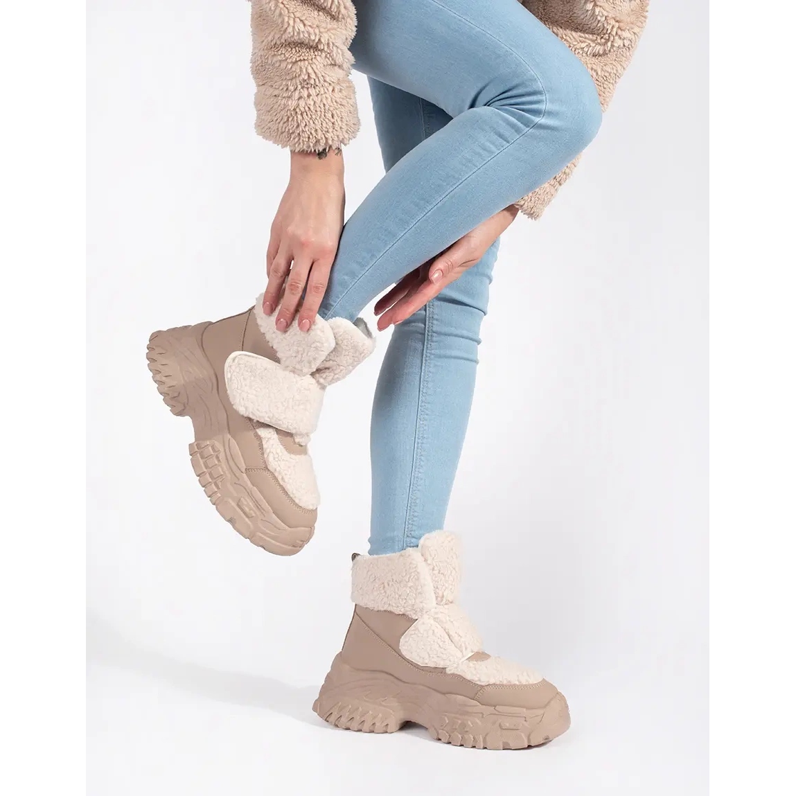 Részletek: Seastar Bézs színű platform hócsizma nyíró szőrmével
