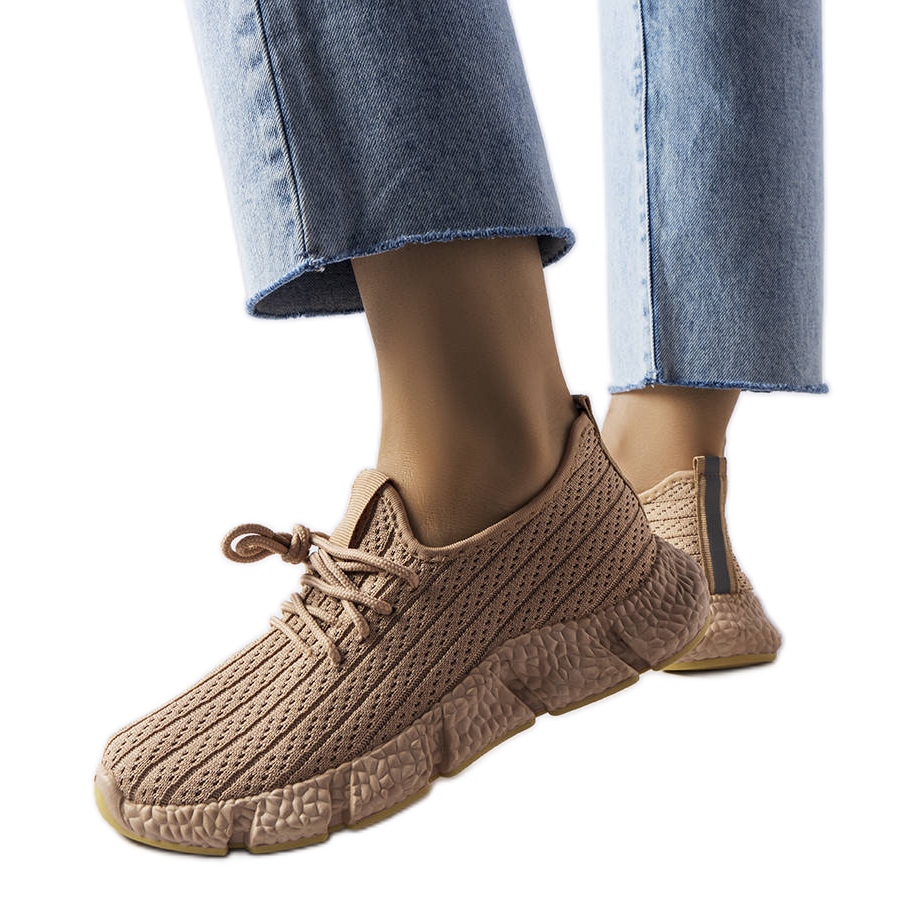 Modern, könnyű cipők A bézs univerzális árnyalatában más élenek javaslatot jelentenek azoknak a nőknek, akik értékelik a kényelmet és a stílust. A rugalmas szövetből készült zokni modell a lábhoz igazodik, és a kötés lehetővé teszi a megfelelő beállítását. A sárga gumi talp eredeti akcentust ad hozzá, és jó tapadást biztosít.