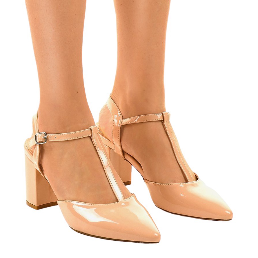 A legjobb minőségű ökológiai bőrből készült pumpák fényes felületükkel gyönyörködnek, ragyogást kölcsönözve bármilyen stílusnak. A világosbarna szín tökéletesen illeszkedik a bőr tónusához, így a lábak hosszabbak és karcsúbbak. A mandula alakú orr egy finom részlet, amely kiemeli elegáns karakterüket.