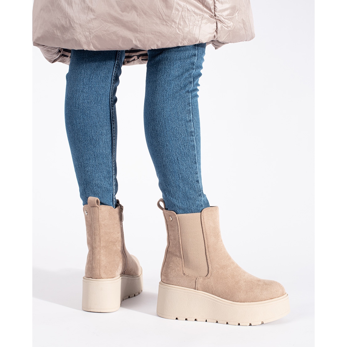 - Modell: Bézs színű velúr Chelsea csizma ékekkel