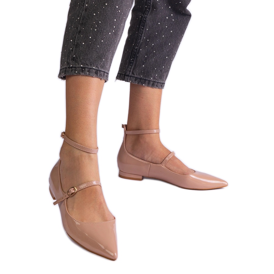Inna marka Bézs szivattyúk lapos sarkú bézs csatokkal