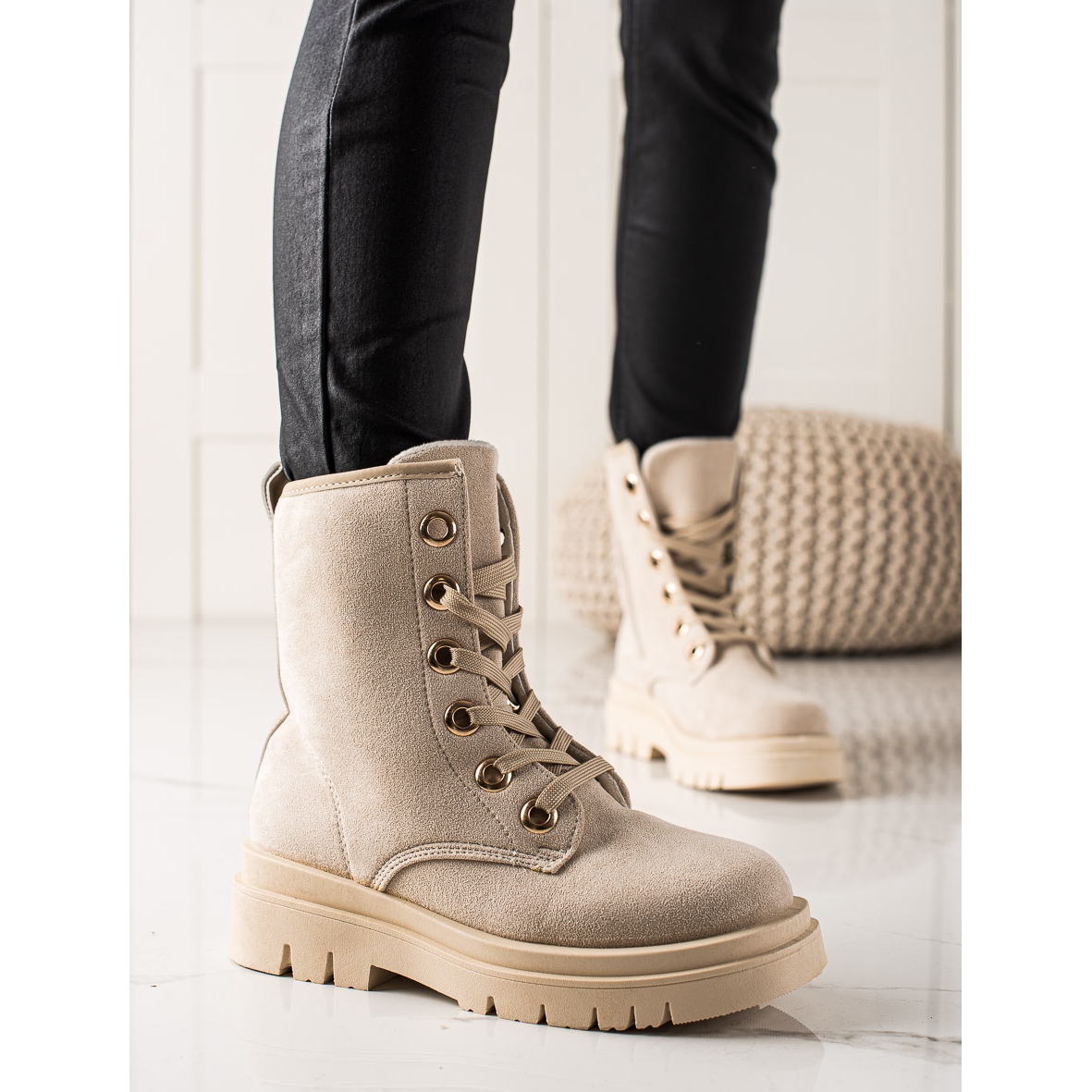 Bemutatjuk a TRENDI gyártó bézs színű velúr csizmáját, mely kiváló választás a stílust és kényelmet értékelő nők számára. Ez az elegáns bokacsizma tökéletesen illeszkedik az alkalmi és klasszikus stílusba, így alkalmas a mindennapi használatra, különösen az őszi/téli szezonban.