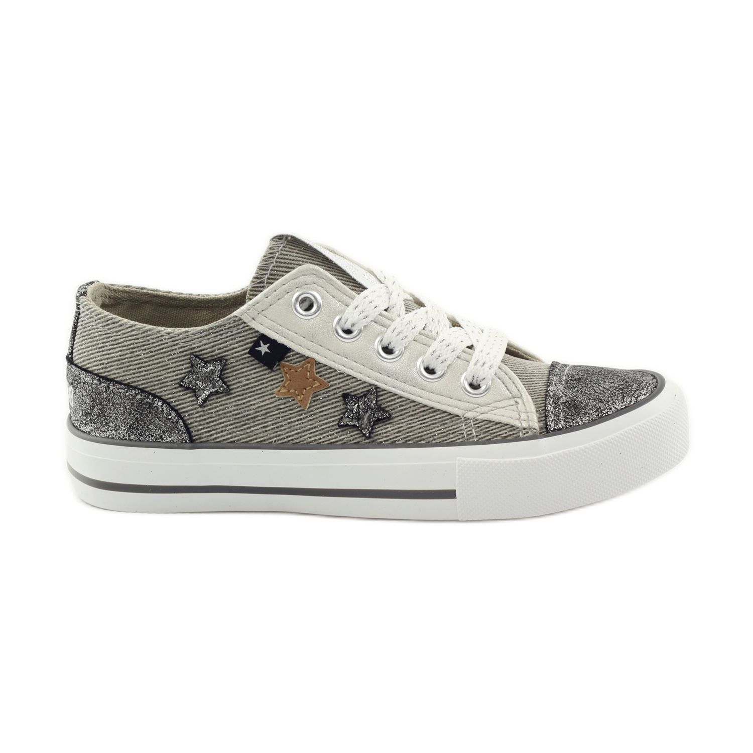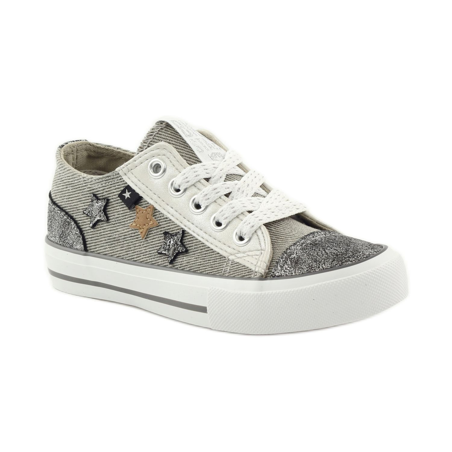 A szürke és ezüst csillagokból álló minta finom csillogó akcentussal extravagáns megjelenést kölcsönöz nekik, amely minden bizonnyal felkelti a figyelmet. A merev saroknak köszönhetően a cipő további tartást biztosít a lábnak, ami intenzív használat során rendkívül fontos.