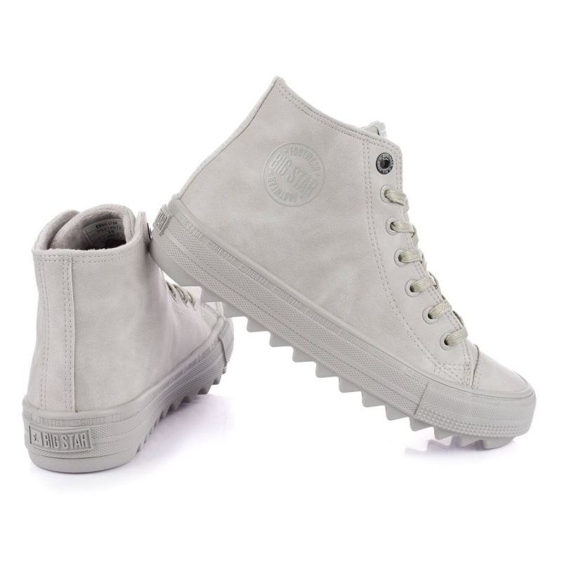 Modern, magas cipők a Big Star nők számára, kombinálva a városi stílust a mindennapi kényelemmel. A szürke, minimalista formatervezés mintázat nélkül teszi a modellt sok stílushoz - a farmertől a sportruhákig.