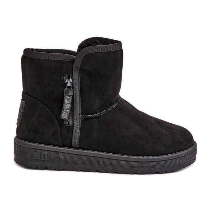 Női hócsizma A Big Star OO274A163 fekete színű választás téli napokra. Kiváló minőségű öko velúrból készültek, ezek a cipők egyesítik a divatos megjelenést és a praktikusságot. A puha szőrrel szigetelt belső tér még a leghidegebb napokon is kényelmet és meleget biztosít, ami ideális megoldást kínál téli sétákhoz vagy napi kirándulásokhoz.