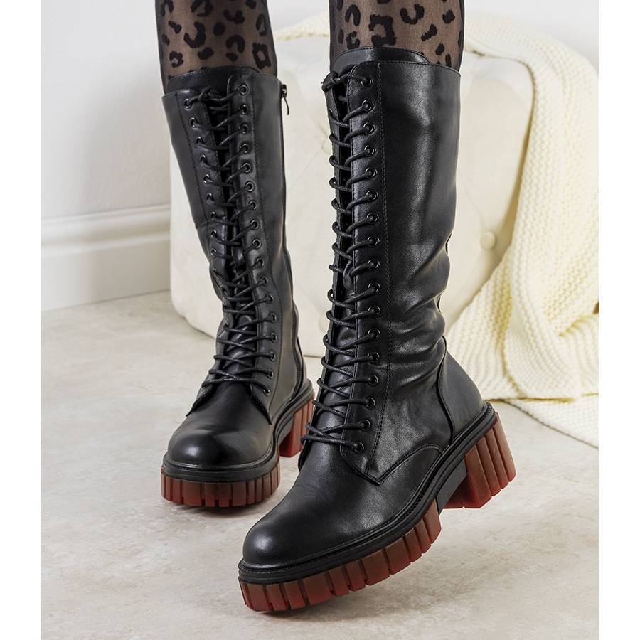 Bemutatjuk a rendkívüli fekete Abril csizmákat, amelyek stílusukkal és funkcionalitásukkal gyönyörködnek. A speciális felsőrésznek köszönhetően tökéletesen illeszkednek a lábszárhoz, kiemelve annak sziluettjét, és egyedi karaktert adnak minden stílusnak.