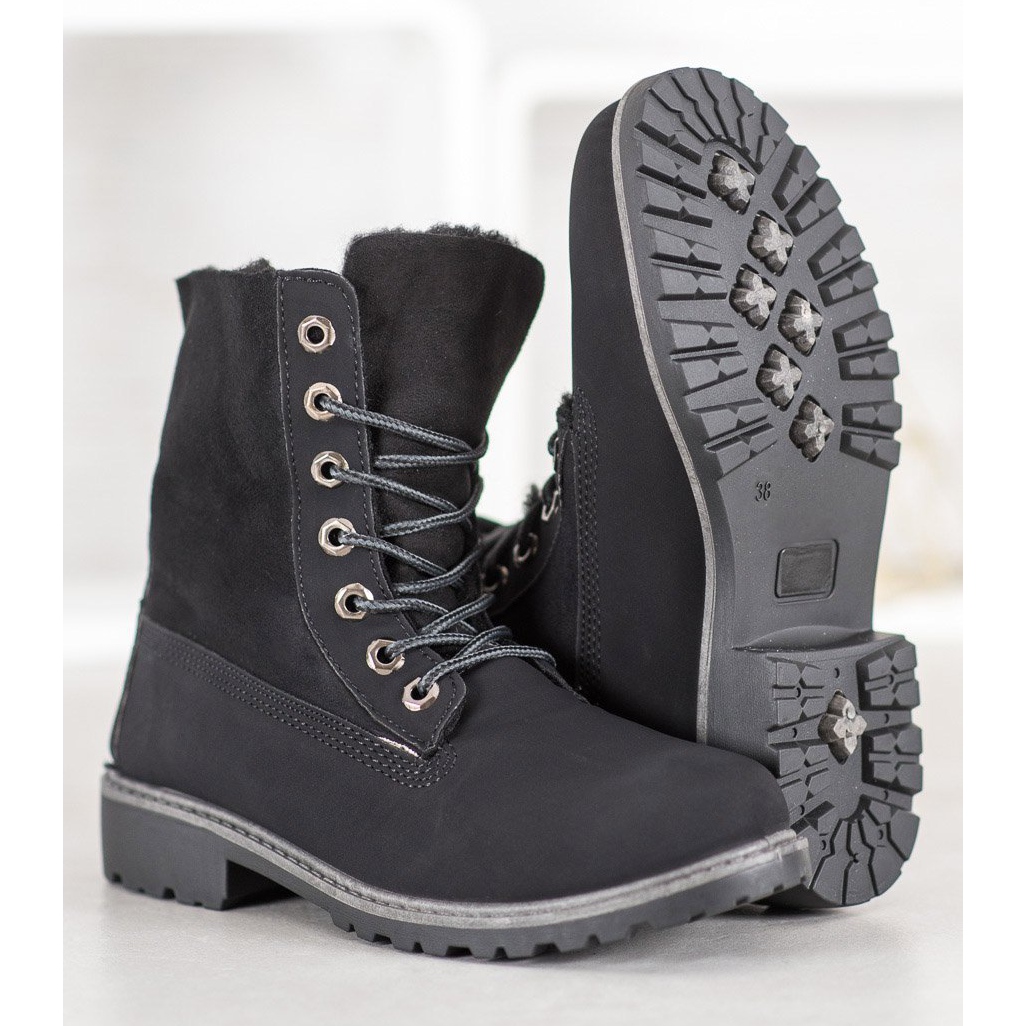 A fekete SHELOVET Trappers tökéletes választás az őszi/téli szezonra azoknak a nőknek, akik értékelik a stílust és a kényelmet. Kényeztesse magát egy kis eleganciával és funkcionalitással, ha ezt az egyedi bokacsizmát választja!