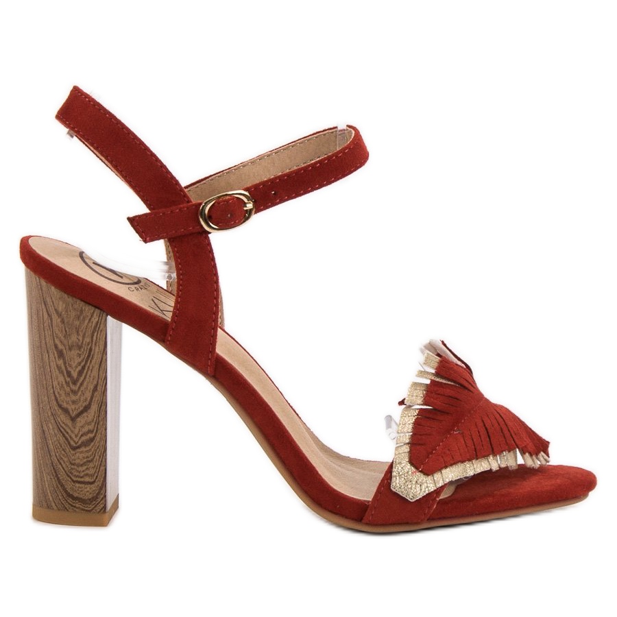 Csodálkozzon el ezen egyedi piros magas sarkú szandálok divatján és kényelmén. Menjen egy felejthetetlen utazásra bohó stílusban a Kylie márkával!