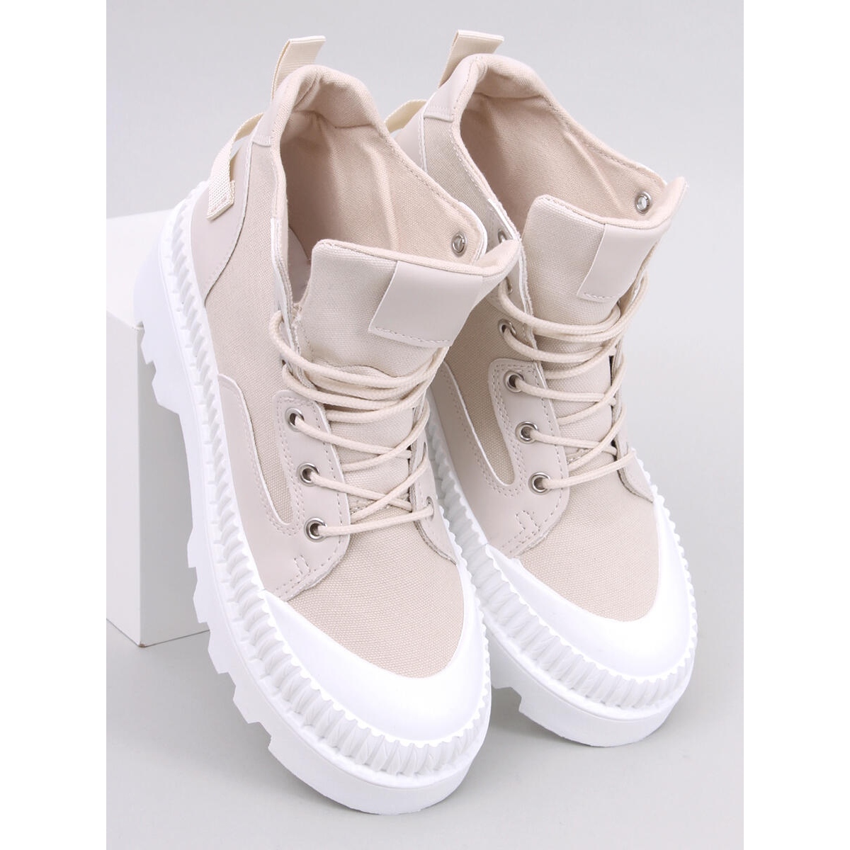 A Tinli Beige magasszárú tornacipő védővel minden nő számára kötelező darab, aki értékeli a kényelmet és a stílusos és időtálló megoldásokat a mindennapi lábbeliben. Ezek az elegáns, mégis hétköznapi cipők klasszikus, mégis modern dizájnnal a tökéletes választás minden alkalomra.