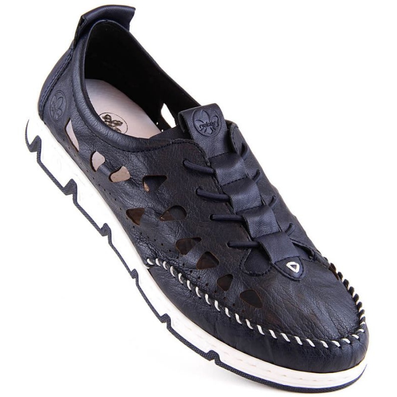 Részletek: Bőr áttört cipő Rieker W RKR652, sötétkék