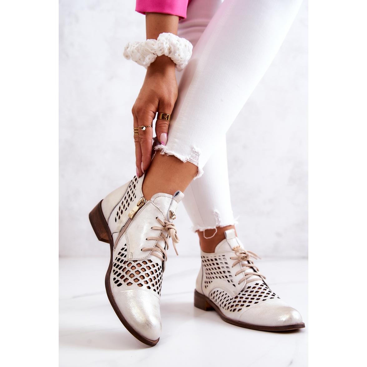 Részletek: Bőr áttört csizma Nicole 2704/004 fehér és arany