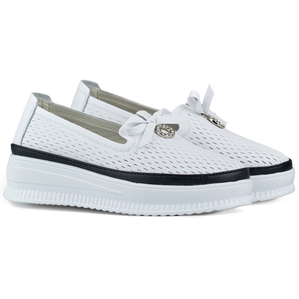Részletek: Bőr áttört női cipők, kényelmes mokaszinok természetes bőrből fehér