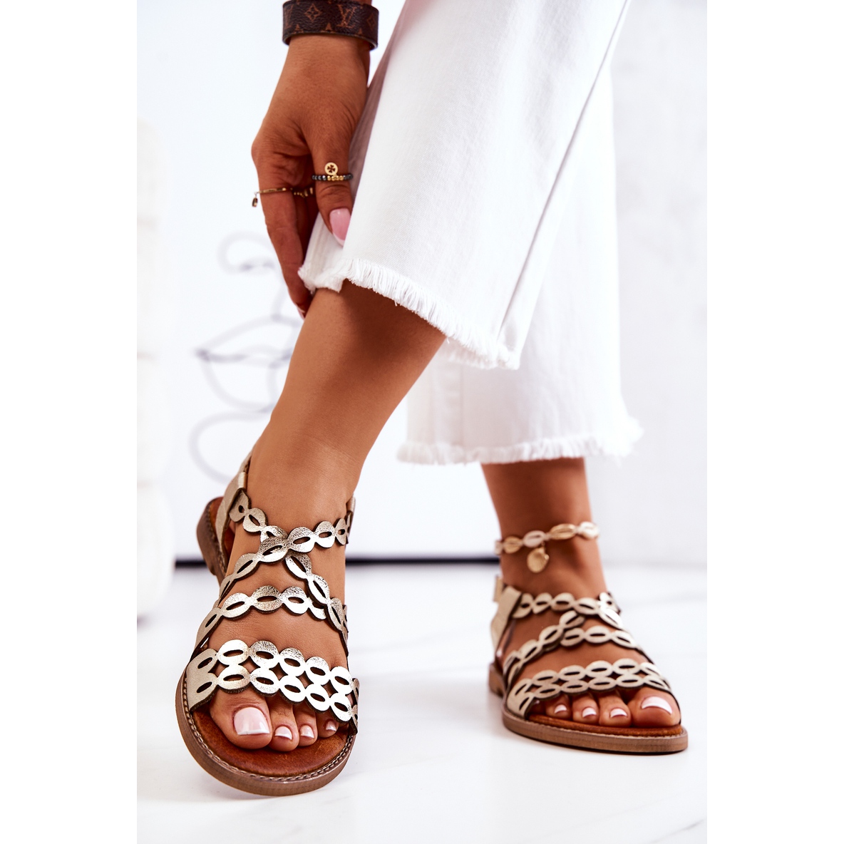 **Lewski cipők bőr áttört szandálok Lewski 3022 arany**
