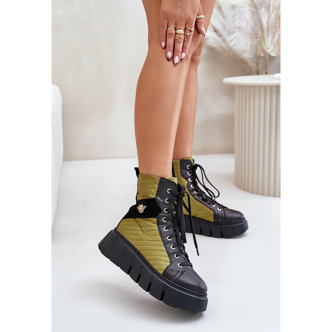 Beállítva egy szilárd platformon, amelynek magassága 4,5 cm, a Boots a funkcionalitást és a divatos stílusú kombinációt kombinálja. A cipzár rögzítésének és a kötésnek köszönhetően számíthat a tökéletes illeszkedésre, valamint a könnyű felállításra. A cipő belseje, amely egy lábbeli takaróval van szigetelve, kiváló választássá teszi őket a hűvösebb napokhoz, és kényelmet kínálva még hosszabb viselkedés során.
