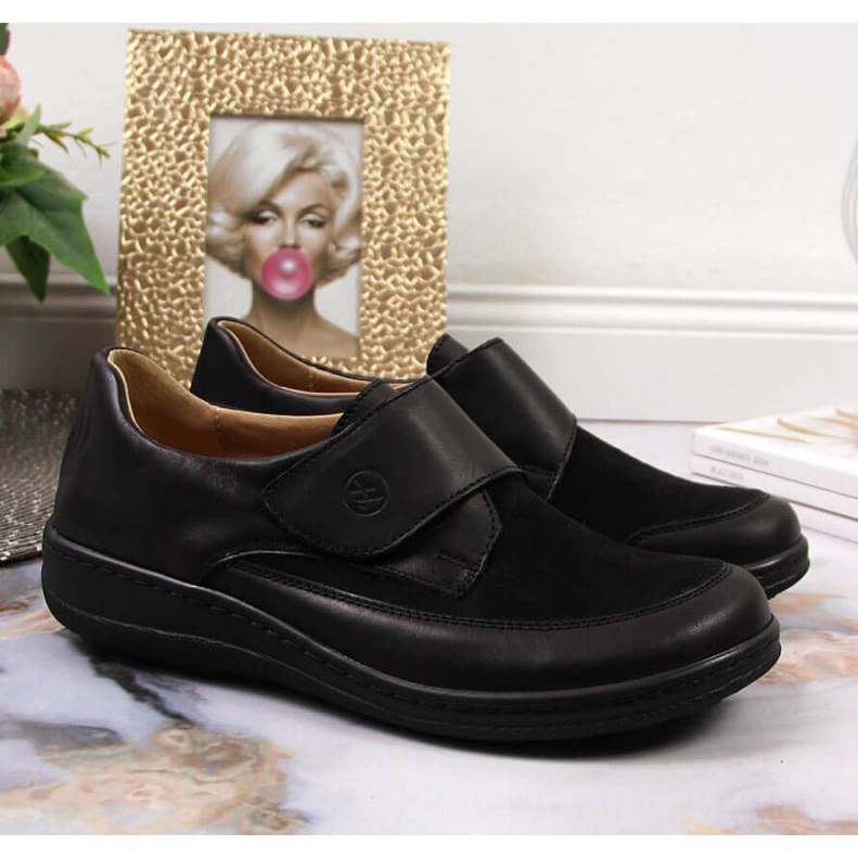 Részletek: Bőr cipő tépőzáras Helios W 395 fekete