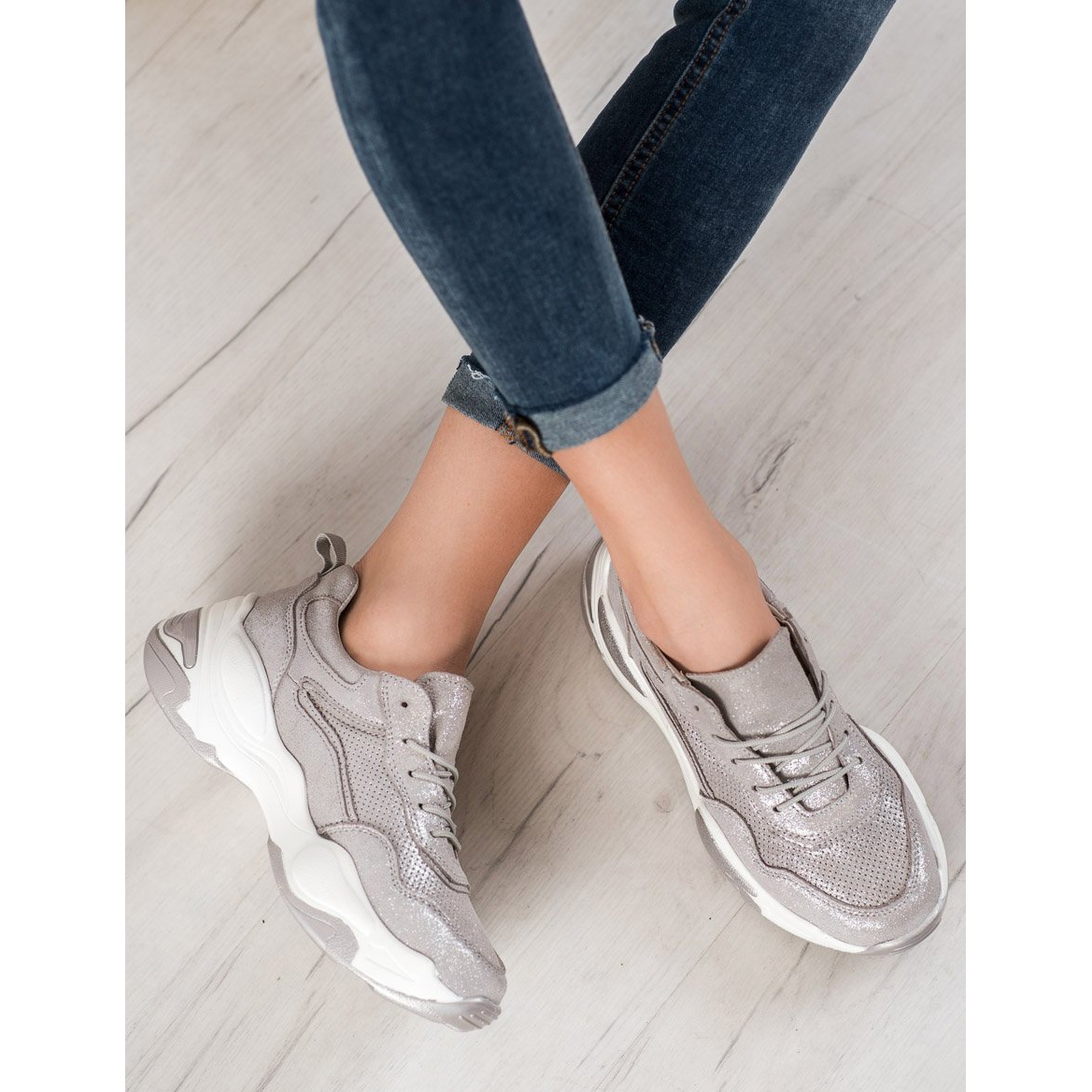 Részletek: Goodin Bőr cipők ezüst szürke
