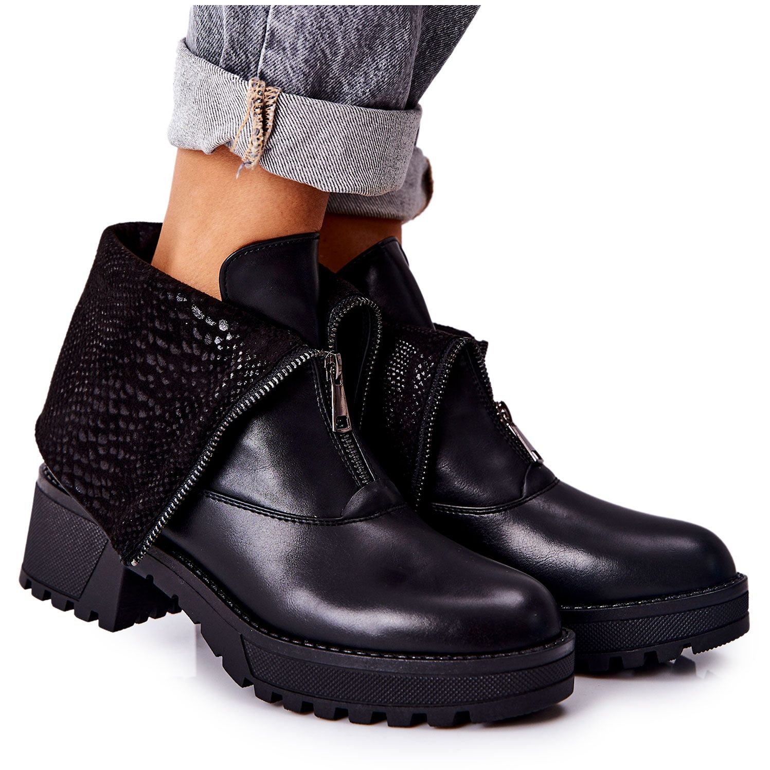 A csizmák felsőrészének elején praktikus cipzárral vannak ellátva, ami gyors és kényelmes fel- és levételt tesz lehetővé. A felsőrész úgy lett kialakítva, hogy az összecsukható legyen, ami egyedi karaktert ad az egésznek. A cipő belsejét kellemes tapintású cipőtakaró béleli, mely kiváló szigetelést biztosít a hideg napokon.