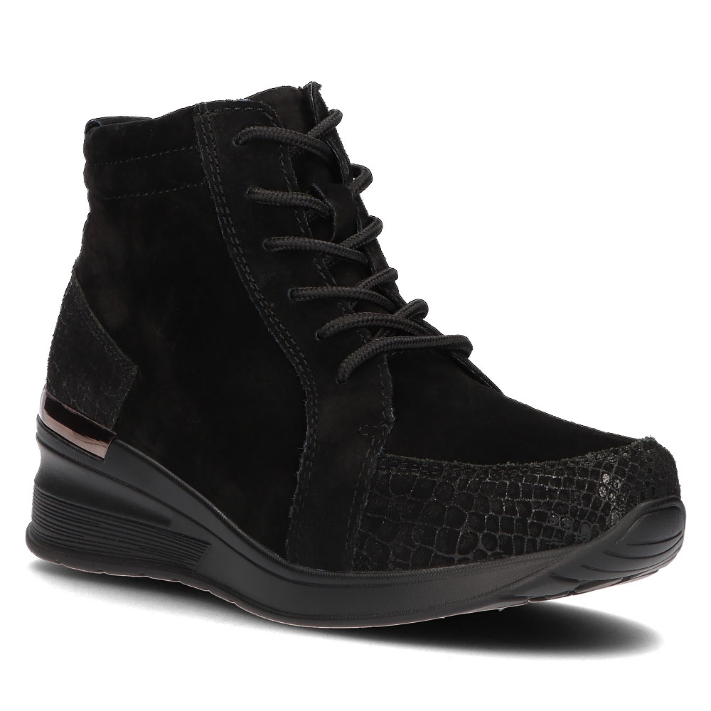 A cipzárnak és a fűzős rendszernek köszönhetően könnyedén a lábadhoz igazíthatod, ami növeli a használat kényelmét. A műanyag talp jó tapadást garantál, az 1,5 cm-es platformmagasság és az 5 cm-es ékmagasság pedig finom eleganciát ad.