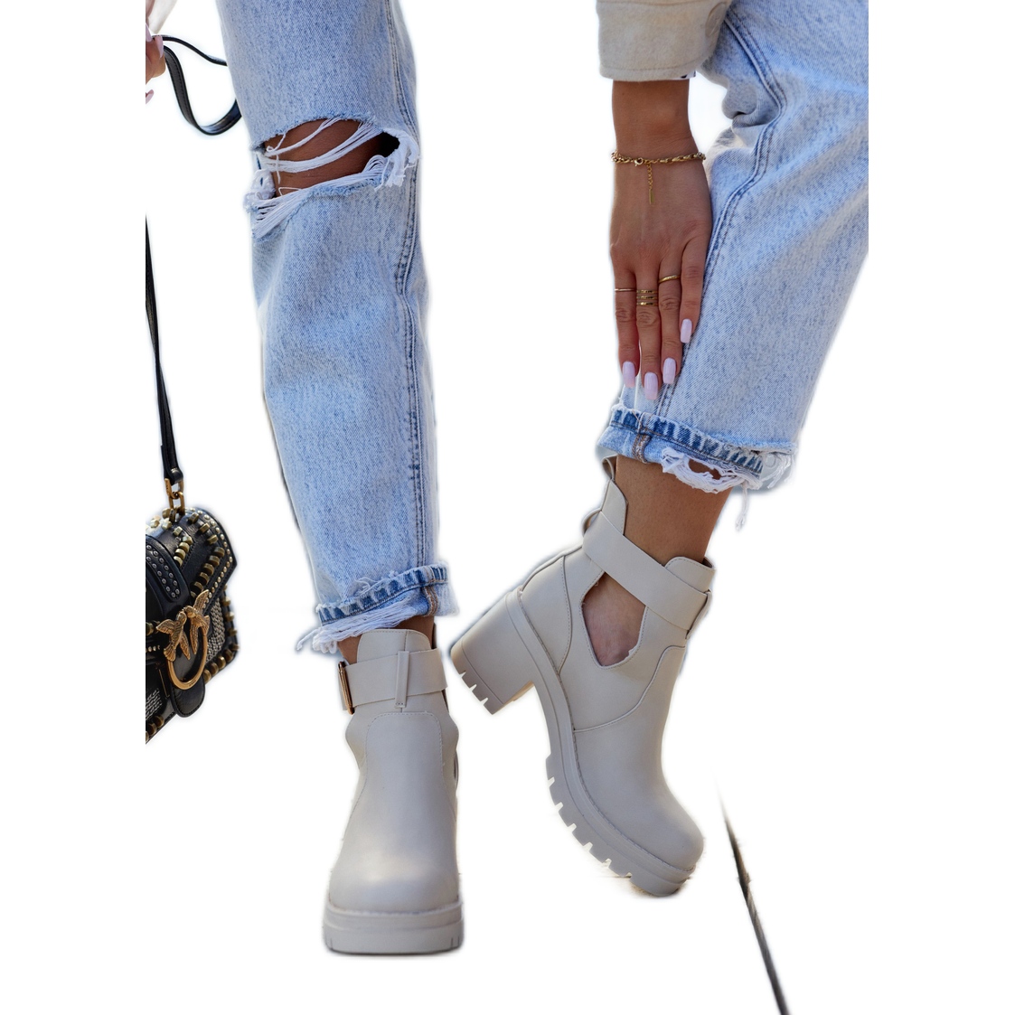 FE1 FE1 Bőr csizma kivágott öv bézs Rosanne