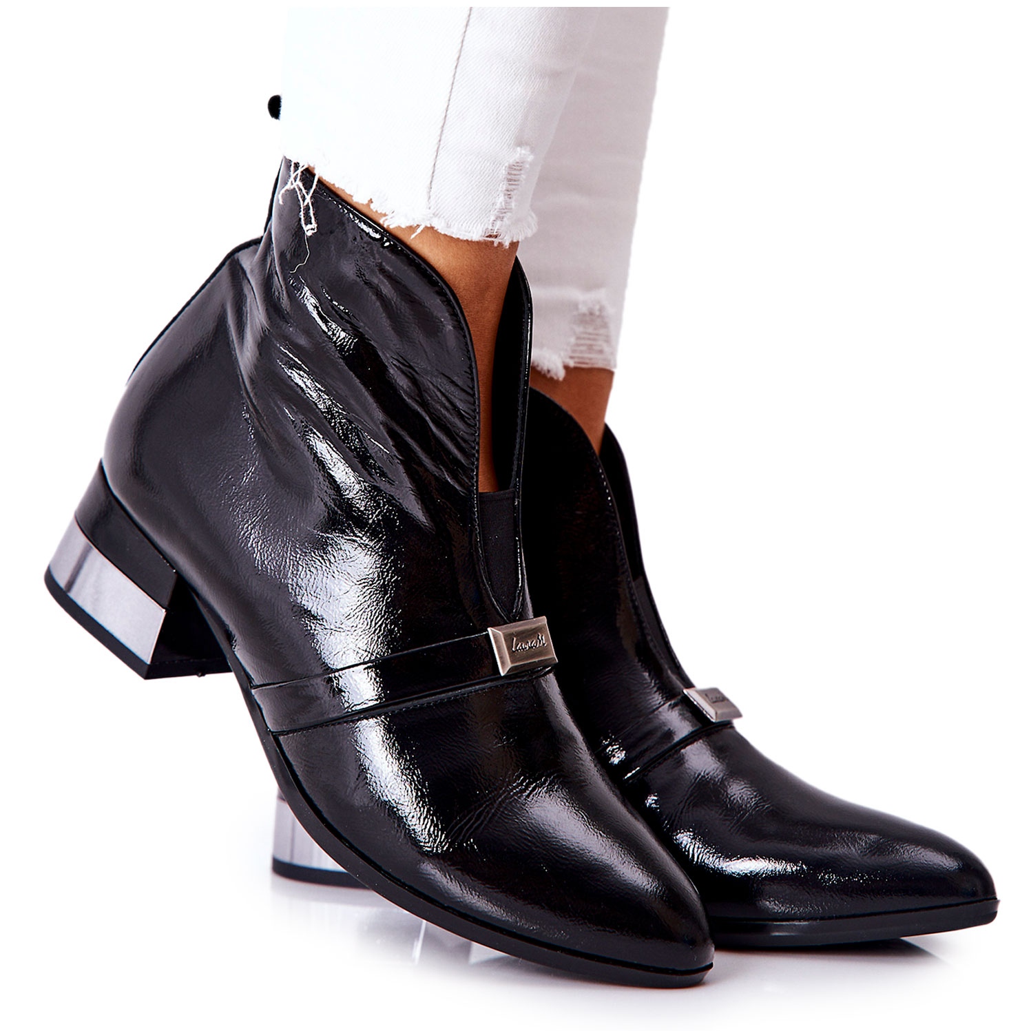 A Laura Messi bokacsizmák szármagassága 12 cm, így tökéletes az őszi-téli szezonra, de szigetelés nélkül, ami kiterjeszti a hordási lehetőségeket. Lakkozott felületüknek köszönhetően felkeltik a figyelmet és kitűnnek a többi modell közül.