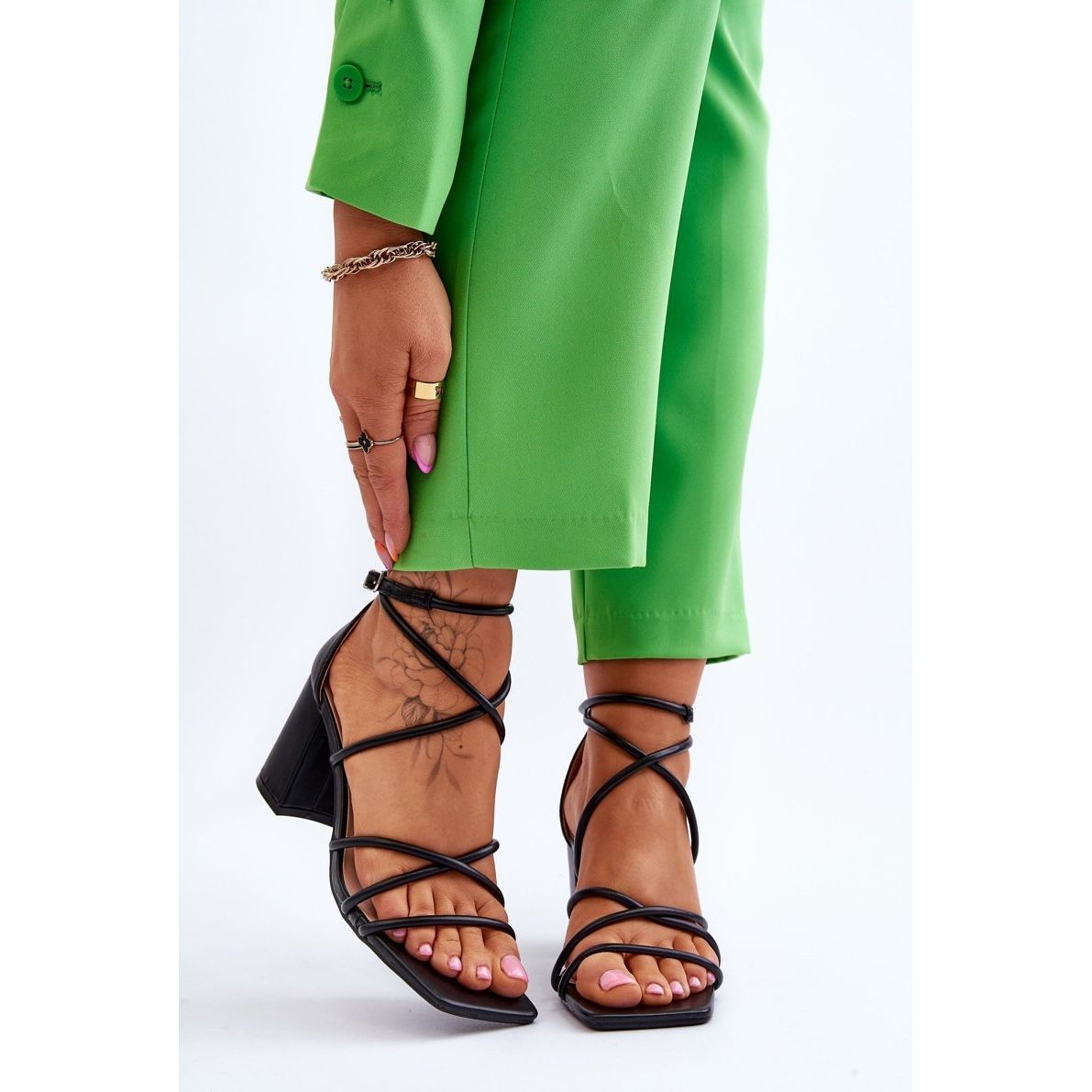 Részletek: Bőr Divatos Női Sarkú Szandál Fekete Primma