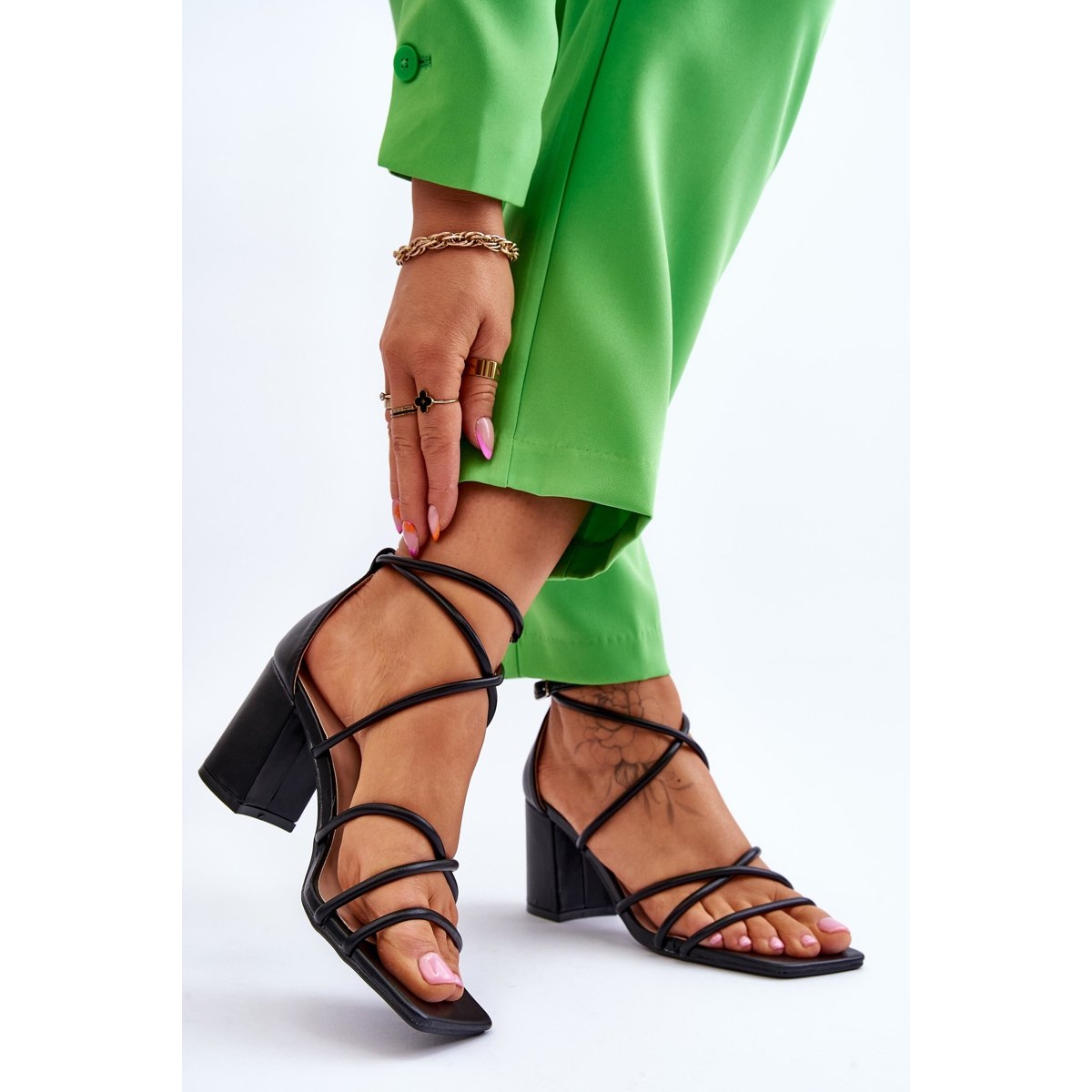 Bőr Divatos Női Sarkú Szandál Fekete Primma