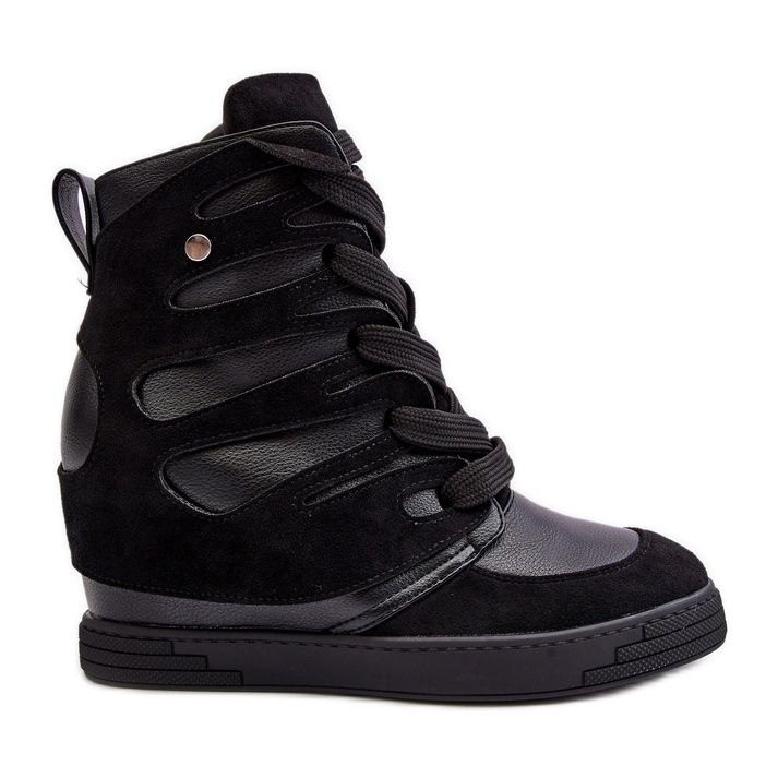 Részletek: Bőr ék alakú bokacsizma, fekete Amria