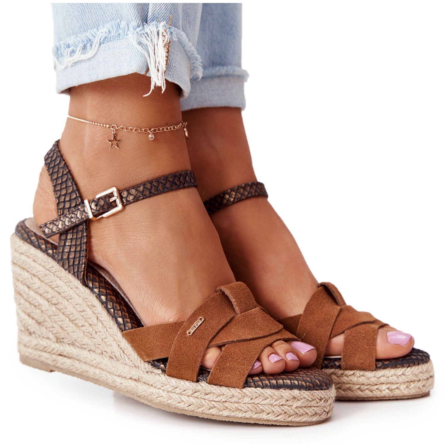 Részletek: Bőr ék szandál Big Star HH274377 Barna