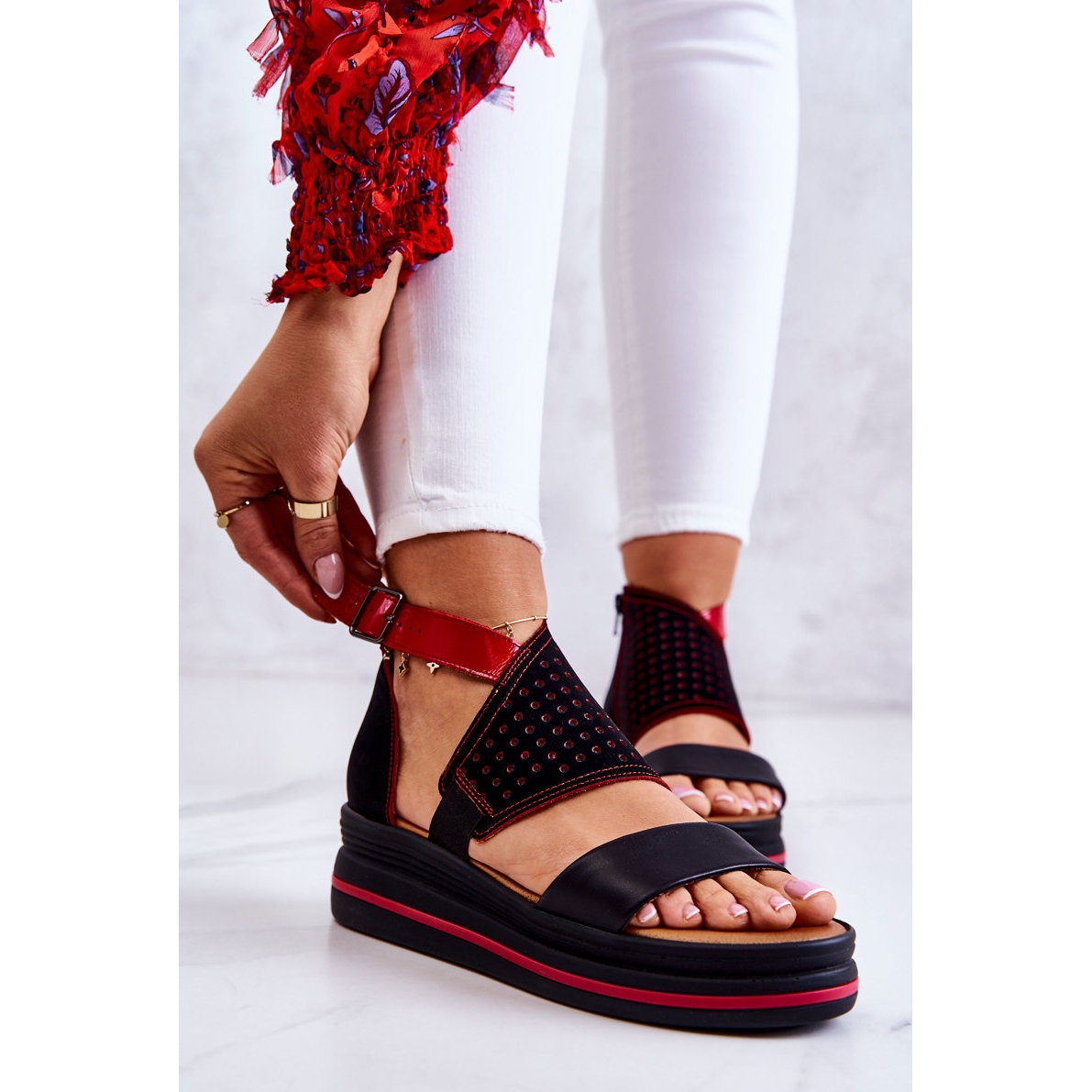 Részletek: Bőr ékszandál Maciejka 05356-01 Fekete-piros