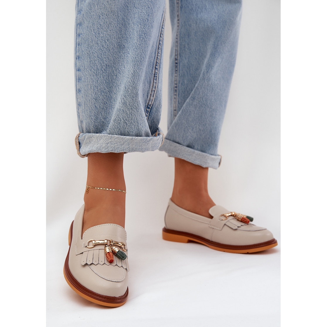 S.Barski S.Barski Bőr elegáns, lapos sarkú cipők S. Barski LR51-768 bézs