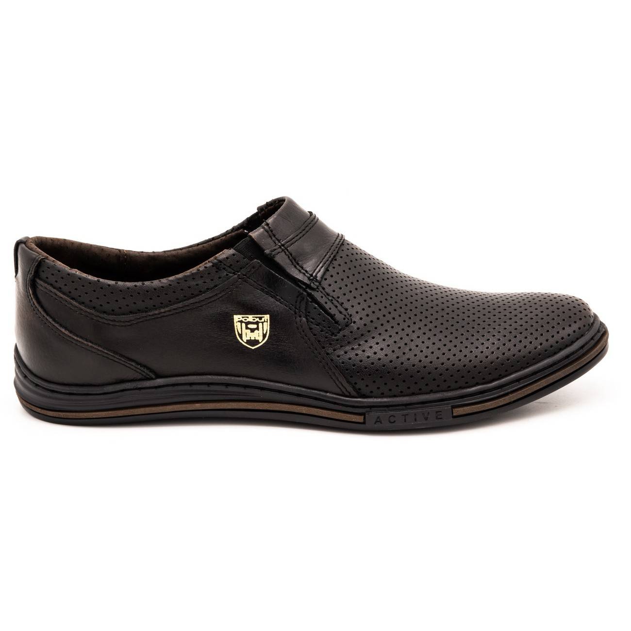 Stílusos és elegáns, bőr férfi cipő Polbut 362 performance kabir fekete színben a tökéletes választás azoknak a férfiaknak, akik a mindennapi kényelmet egy kis előkelőséggel szeretnék ötvözni. A teljes egészében kiváló minőségű természetes bőrből készült cipők minden bizonnyal tetszeni fognak mindenkinek, aki univerzális és elegáns lábbelit keres.